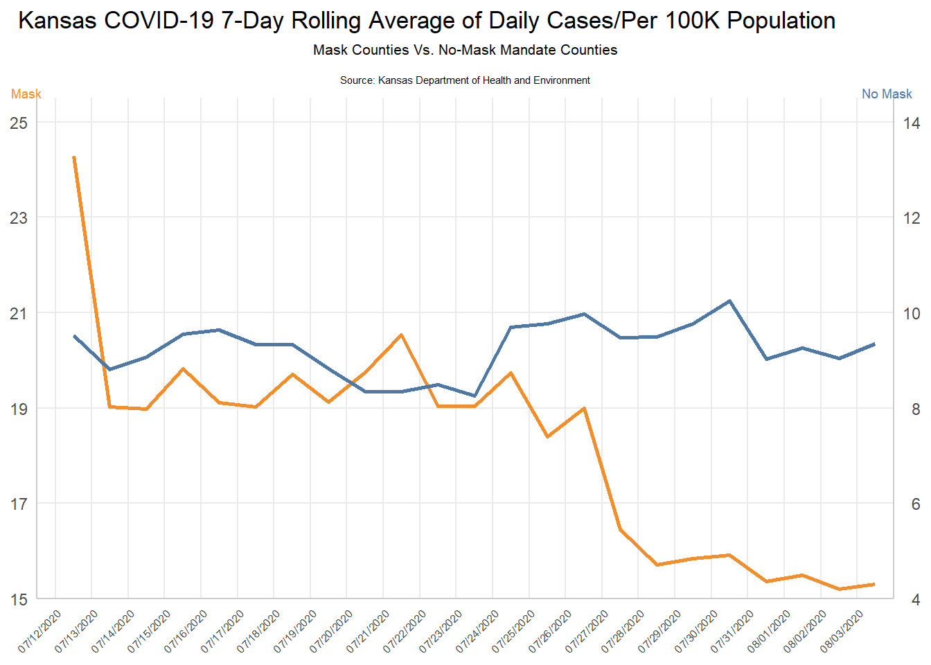 The visualization in this lab comes from a KDHE press conference on August 5, 2020. It compares