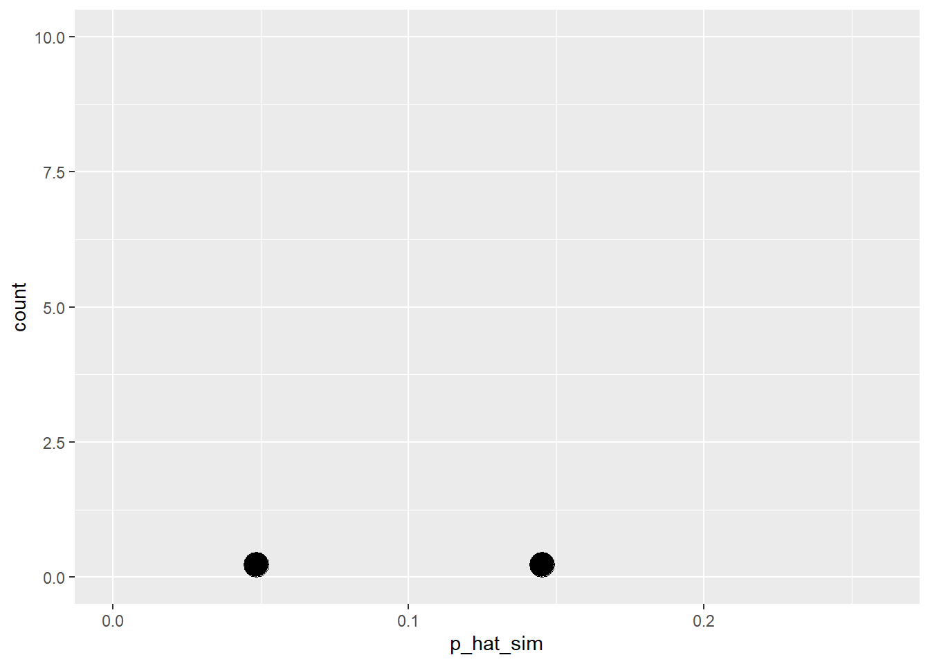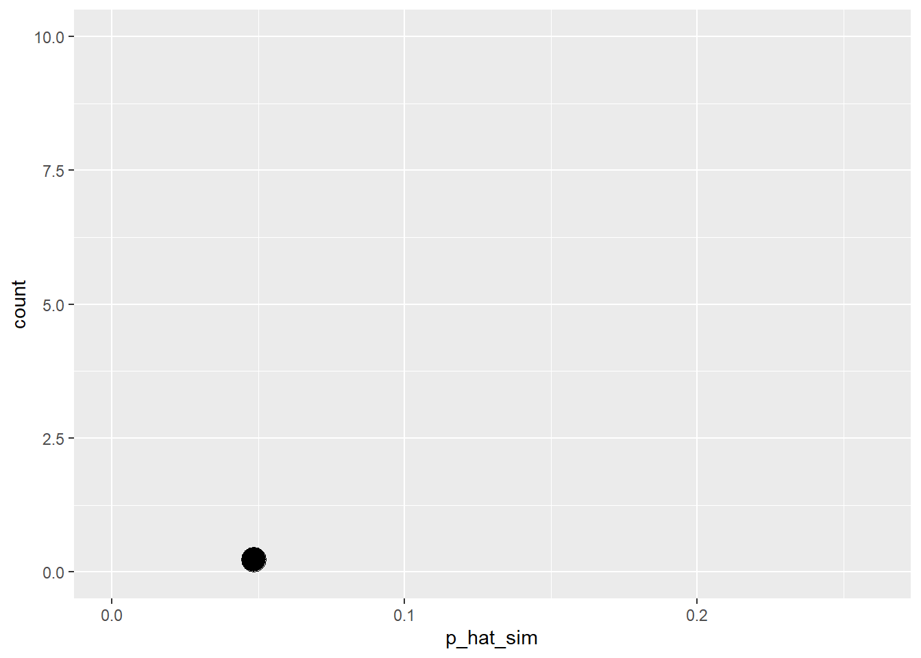 What is the p-value, i.e. in what % of the simulations was the simulated sample proportion at least as extreme as the observed sample proportion?