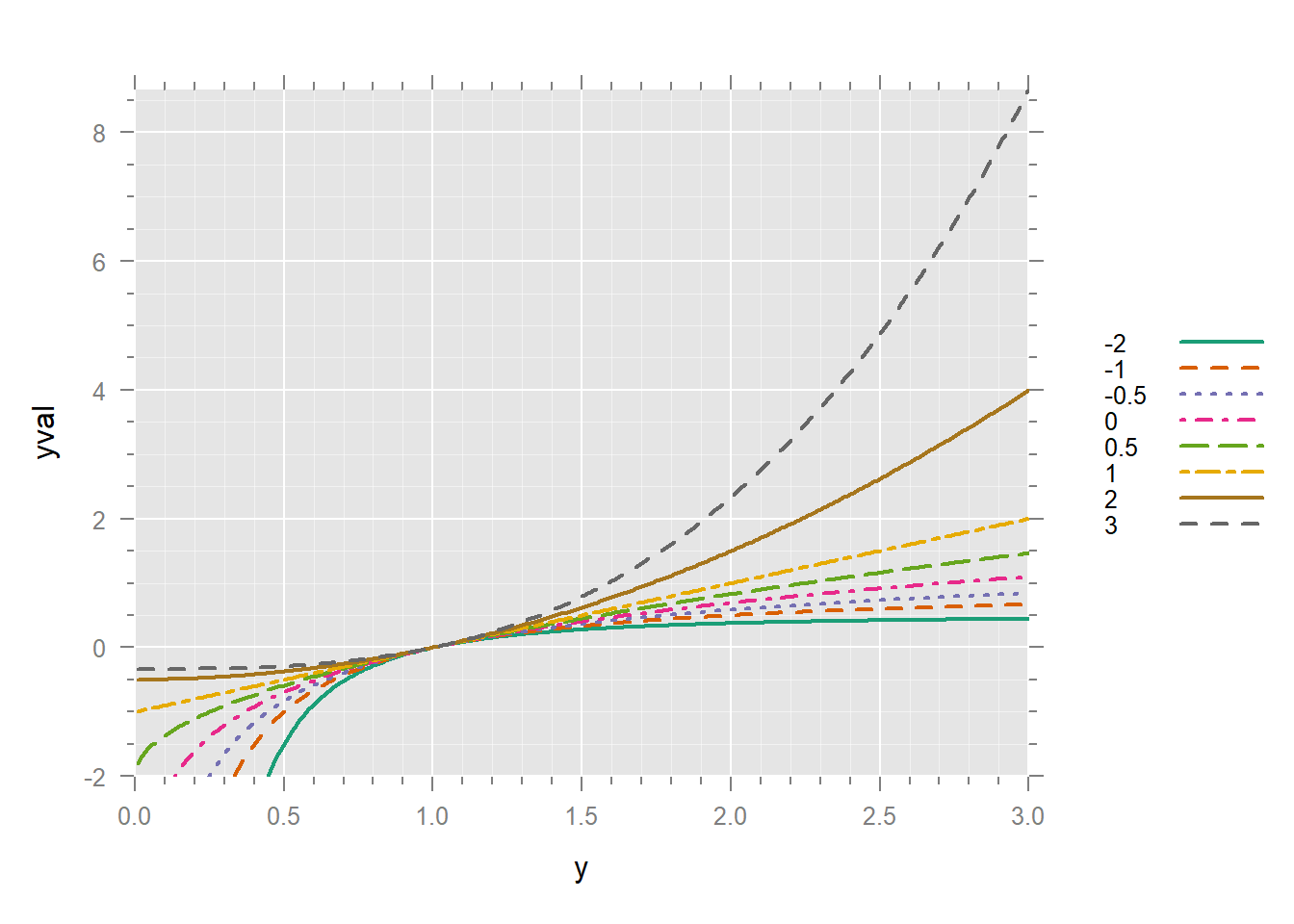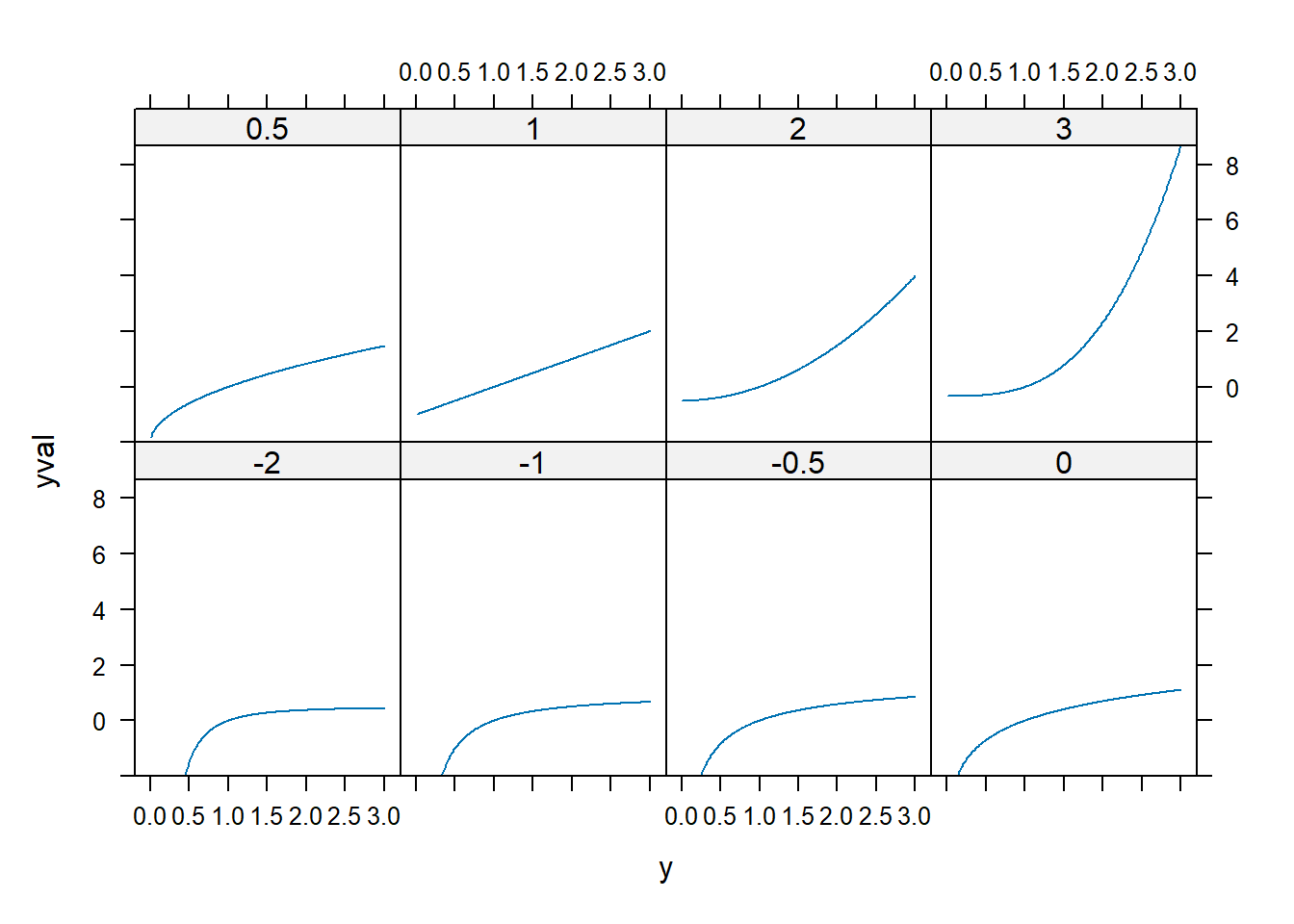 ifelse(p == 0, log(y), (y^p - 1) / p)