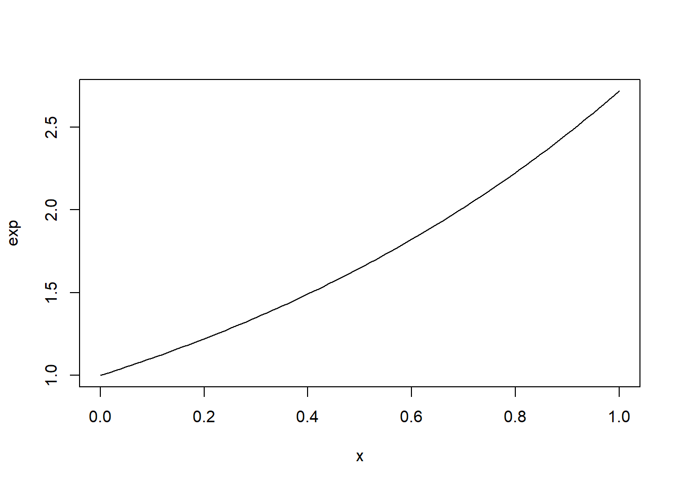 # cbind()Because functions are first-class objects in R, we can also define the exponential function and plot it directly.